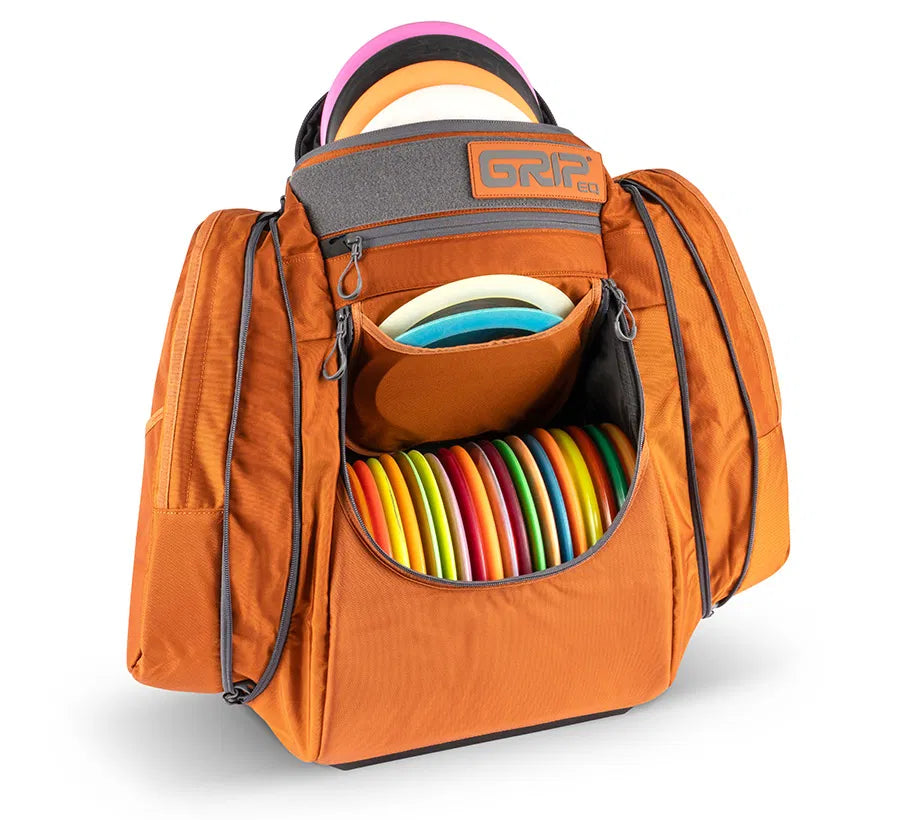 All GRIPeq©️ disc golf bags combine market-leading design and innovation with superior materials and craftsmanship to deliver optimal functionality and unmatched ORIGINAL GRIP©️ player comfort. The iconic GRIPeq©️ AX series is widely recognized as the best disc golf bag, carried and used by professionals, aspiring amateurs and casual players worldwide. The AX5©️ features a spacious 22-disc capacity main compartment, a height-adjustable 4-disc Quick Pull©️ top pocket, integrated Up-Standing©️ flexible structure and two large capacity expandable side pockets. With two deep Big Bottle insulated pockets and a Slip Sleeve©️ that secures a full-size golf umbrella or stand chair, this AX5©️ is designed to carry it all with ease. Now with an updated NEW enlarged Soft Collar©️, reinforced Ergo-shaped shoulder straps, adjustable Sternum Synch and NEW thicker high-density EVA padding for maximum shoulder support, the AX5 is built to provide durability and unparalleled comfort on the go. Designed by GRIPeq – Made on Planet Earth – Guaranteed for Life