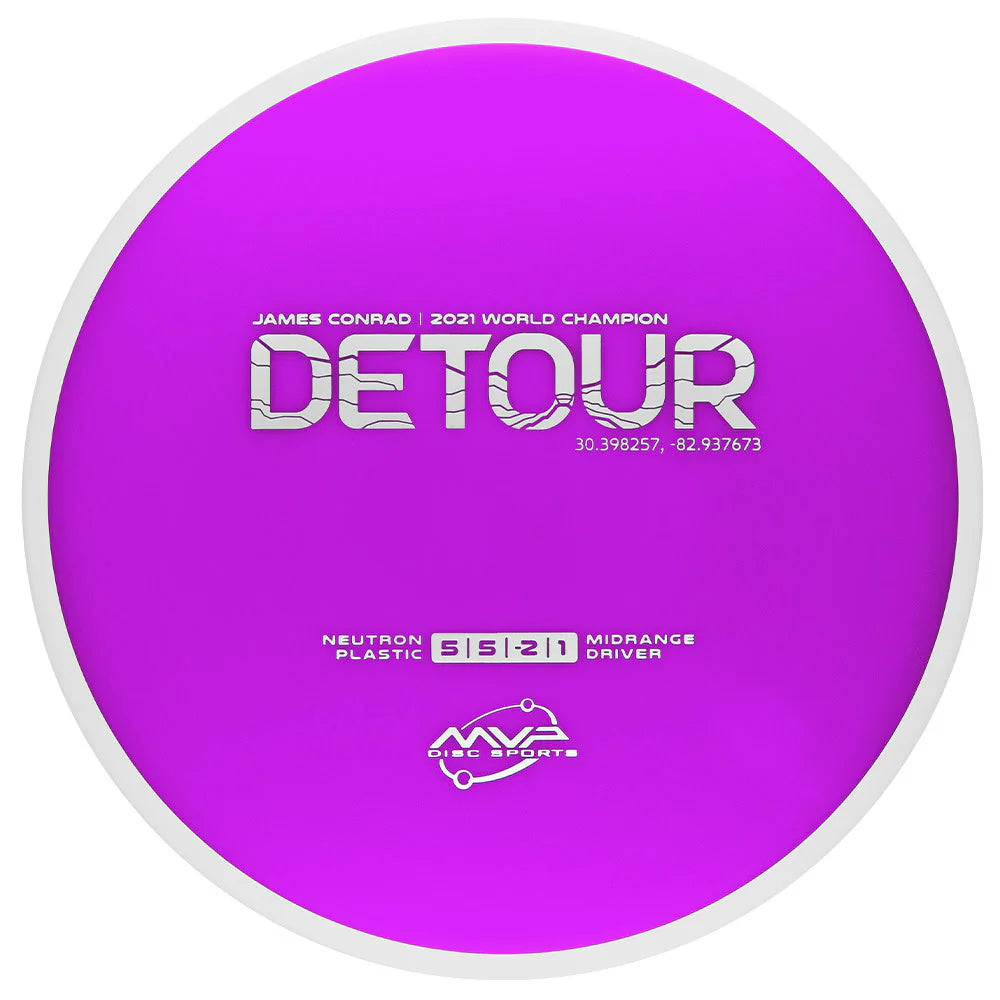 Neutron Detour – lidojums tieši starp Axiom Discs Hex un MVP Uplink. Viegli hyzer metieni vai arī ilgi planējoši lidojumi pa labi, izmetot anhyzer metienu – tas ir tas, kas vislabāk padodas Detour diskam. Piemērots visu līmeņu spēlētājiem, īpaši noderēs iesācējiem kā pirmais disks.